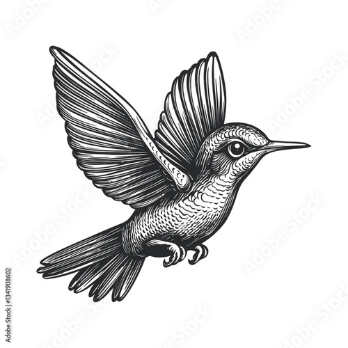 Fototapeta premium Detailed Woodcut Style Illustration of a Hummingbird in Motion