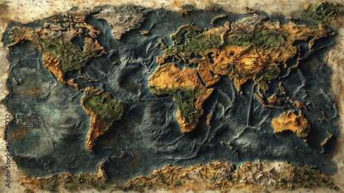 Naklejka premium Detailed world map, textured, vintage style