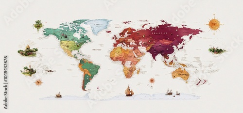 © alisya, Obraz premium Detailed world map with continents and countries in colorful tones.