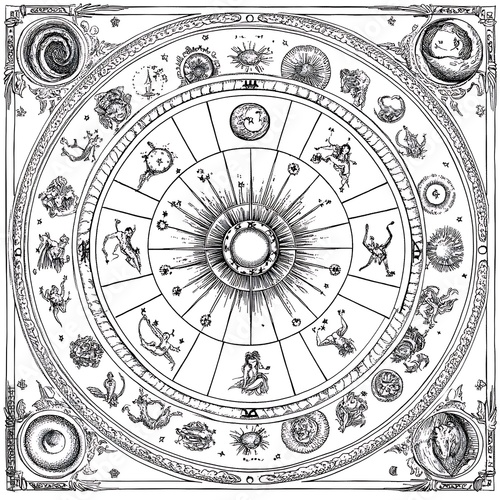 Naklejka premium Detailed Zodiac Wheel with Astrological Signs