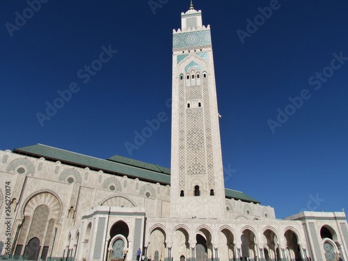 © Massimiliano, Fototapeta premium Details and peculiar angles of the Beautiful Mosque Hassan II during sunset. The Mosque in Casablanca is the third largest one in the world