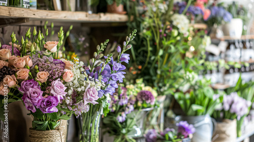 © ANNELEVEN, Obraz premium Details and products on shelves in the English counryside farm shop, small business, country style design