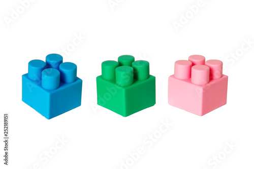 Fototapeta premium details of a children's plastic constructor on a white background. colored cubes. block.
