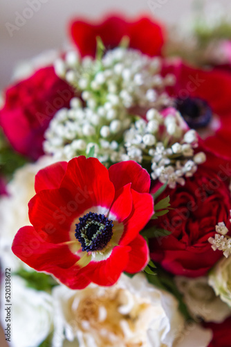 Fototapeta premium Details of a colorful wedding bouquet close-up