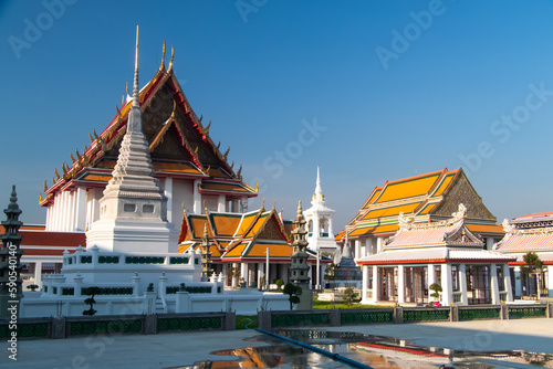 © Thomas, Naklejka premium Details of Buddhist temple in Bangkok under blue sky
