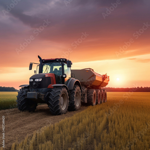 © Алена Ваторина, Obraz premium Details of farmer working in the fields with tractor on a sunset background. Generative AI