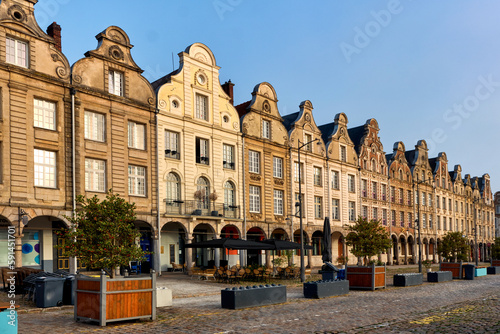 © hectorchristiaen, Fototapeta premium details of the houses of the square of the Grand Place in Arras, North of France