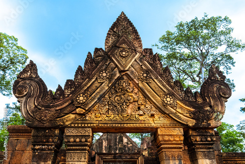 Naklejka premium Details of the ruined temples of Angkor Wat complex, Siem Reap, Cambodia