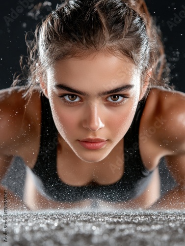 © Vee, Obraz premium Determined Athlete Executing Push-Up with Confidence and Focus