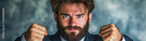 © I Have Photos, Obraz premium Determined Man with Intense Expression in Business Attire