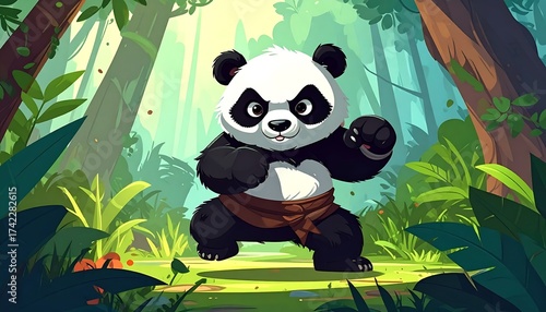© aura, Fototapeta premium Determined Panda Ready for Action in Lush Forest Setting.