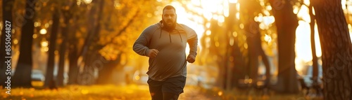 © doraclub, Fototapeta premium Determined Runner Jogging Through Scenic City Park at Sunrise