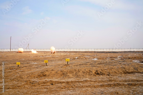 © Vladimir, Fototapeta premium Detonation of a mined field. Military exercises.