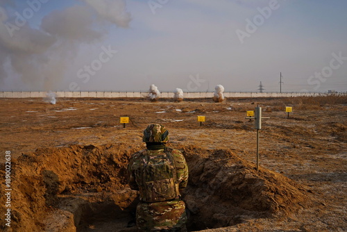 © Vladimir, Fototapeta premium Detonation of a mined field. Military exercises.
