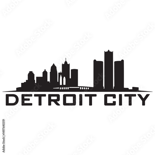 Naklejka premium Detroit City skyline horizontal banner. Black Detroit City, Michigan. Vector template for your design. Vector black silhouette. with white background