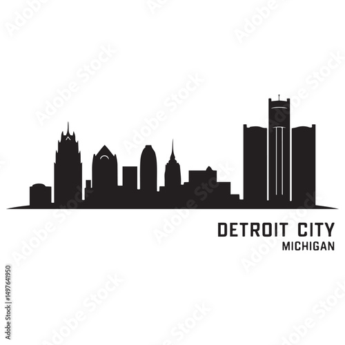 Naklejka premium Detroit City skyline horizontal banner. Black Detroit City, Michigan. Vector template for your design. Vector black silhouette. with white background