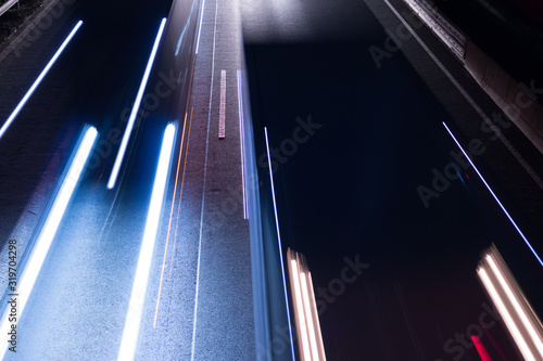 © Christian Schwier, Obraz premium Deutsche Autobahn mit Verkehr bei Nacht