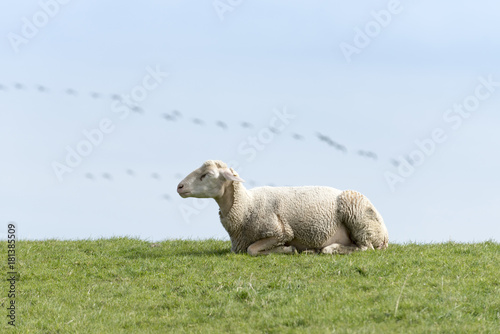 Obraz premium Deutschland, Niedersachsen, Ostfriesland, Krummhörn, Schafe beim Pilsumer...