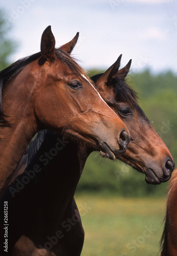 Fototapeta premium deux têtes de cheval de selle français de profil