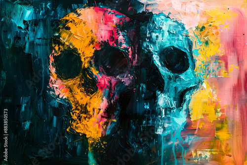 © Concept Photo Studio, Fototapeta premium Deux têtes de mort en peinture
