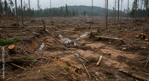 © elmo, Obraz premium Devastated Forest Landscape After Extensive Logging Operations
