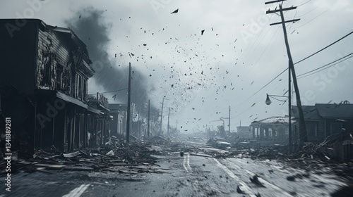Fototapeta premium Devastation aftermath in a deserted cityscape, a grim reminder of disaster