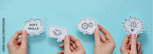 Naklejka premium development of soft skills in human life: communication, teamwork,...