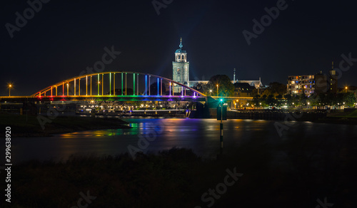 Obraz premium Deventer bridge over river IJssel in rainbow colors on Coming Out Day