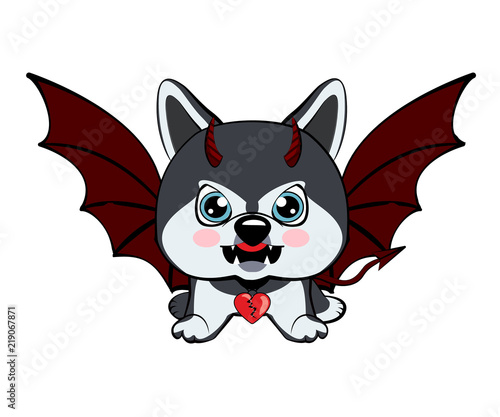 © mlanaa, Obraz premium Devil Dog with horns and bat wings