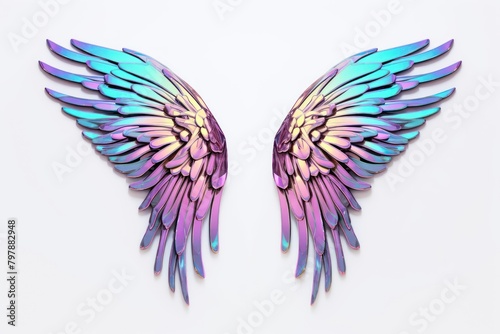 Obraz premium Devil wings iridescent purple flying white background.
