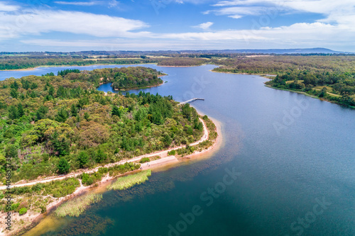 © Greg Brave, Fototapeta premium Devilbend Reservoir lake and forest - aerial view