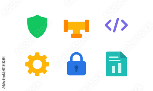 © 123levit, Fototapeta premium Devsecops icon set for technology and security design projects