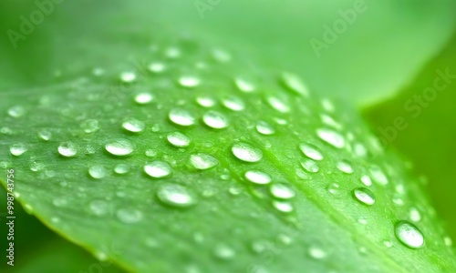 © Bualong, Fototapeta premium Dew-covered leaves in a close-up view