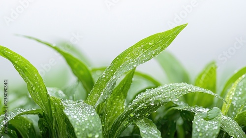 Fototapeta premium Dew-covered plants, close-up, outdoor, blurred background; nature website
