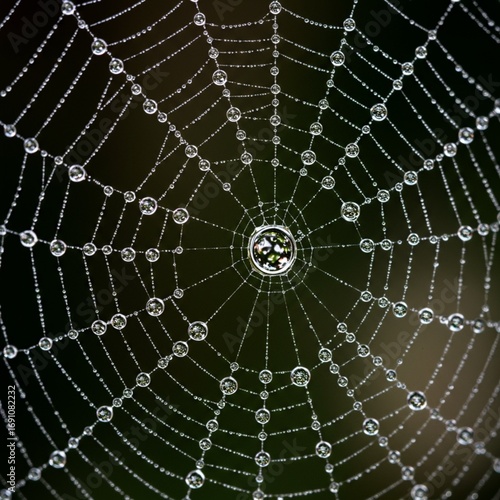 © Heera, Fototapeta premium Dew-Covered Spiderweb