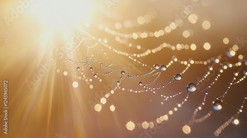 © Sana, Fototapeta premium Dew-covered spiderweb under soft morning light