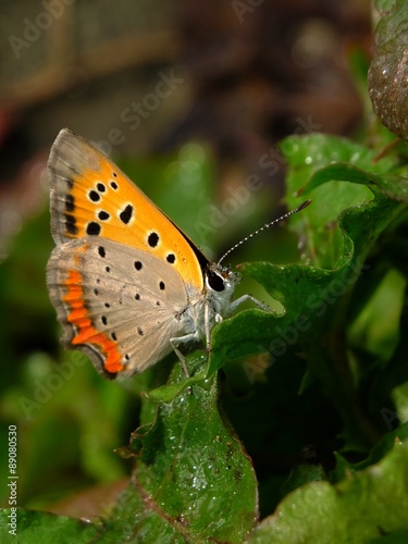 © Naoki Kim, Obraz premium dew drop butterfly on the leaf