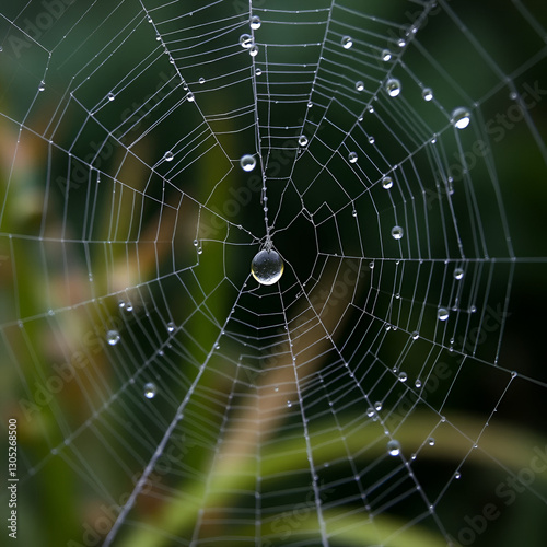 © Sara, Naklejka premium Dew drop on spider web in Western Washington.