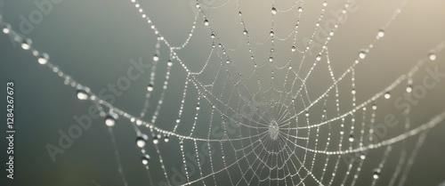 © Ta Sher, Naklejka premium Dew drops glisten on delicate spider web threads in a halftone texture