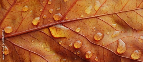 Fototapeta premium Dew Drops on Autumn Leaf