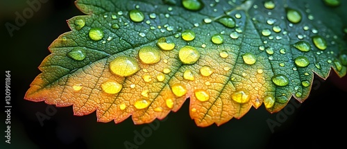 Fototapeta premium Dew Drops on Colorful Leaf