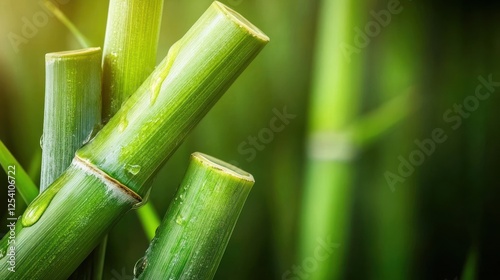 Fototapeta premium Dew Drops on Lush Green Bamboo Stalks