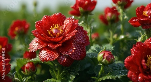Fototapeta premium Dew drops on red flowers