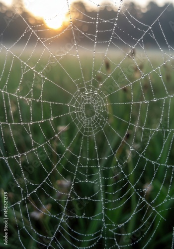 Obraz premium Dew Drops Sparkling on Spider Web Delicate Ecosystem