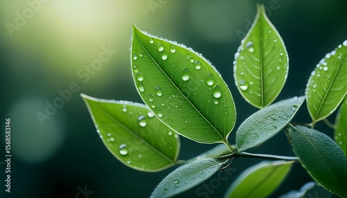 Fototapeta premium dew kissed green leaves