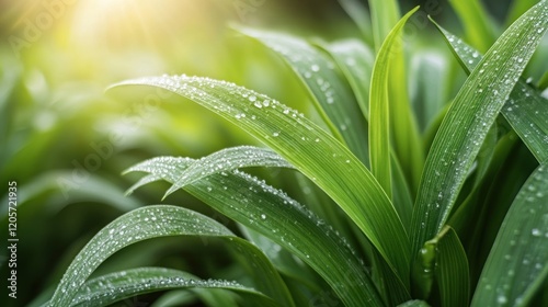 Obraz premium Dew-kissed leaves, sunrise, garden, freshness
