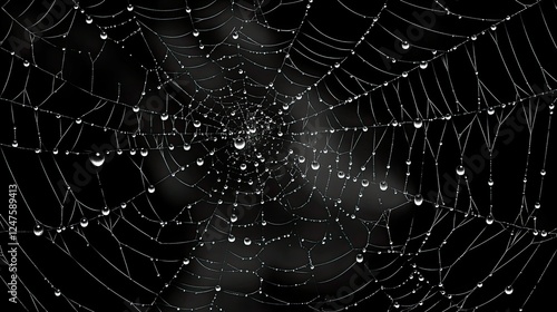 Fototapeta premium Dew-Kissed Spiderweb: A Nocturnal Tapestry