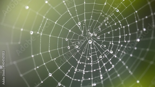 Fototapeta premium Dew-kissed Spiderweb: Nature's Architectural Masterpiece