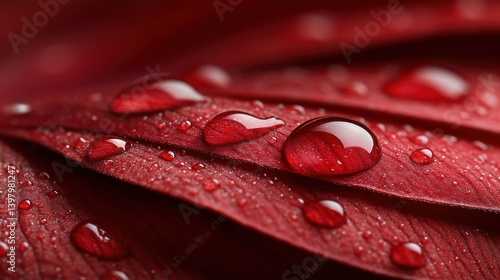 © Lemdah, Fototapeta premium Dewdrop-covered crimson petal