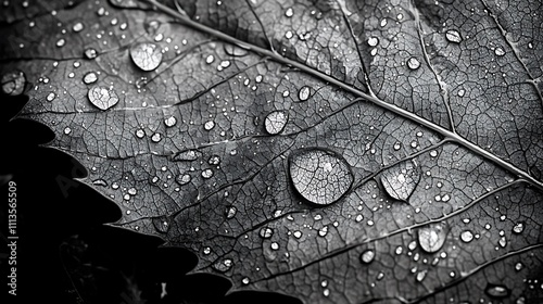 Fototapeta premium Dewdrops Adorn A Dried Leaf Showing Intricate Veins
